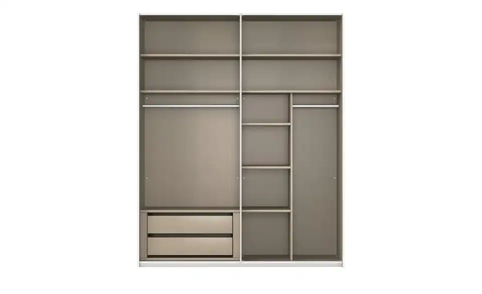 - Mehr zu AusführungZweitüriger Schwebetürenschrank inkl. ZubehörBestehend aus zwei Elementen (je ca. 90 cm breit)