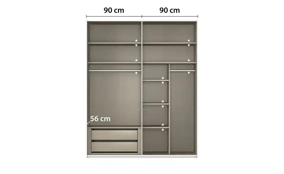 - Lieferumfang / mitgeliefertes ZubehörSchwebetürenschrank mit Schubkasteneinsatz (2 Schüben), SChrankinneneinteilung und Schwebetürendämpfer
