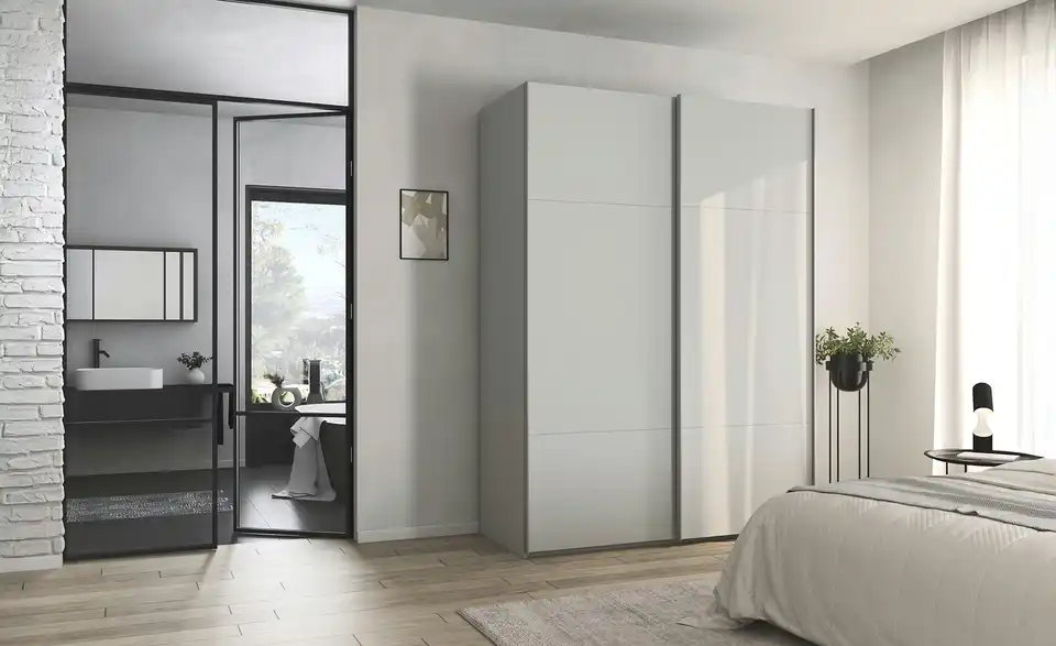- Mehr zu AusführungZweitüriger Schwebetürenschrank inkl. ZubehörBestehend aus zwei Elementen (je ca. 80 cm breit)