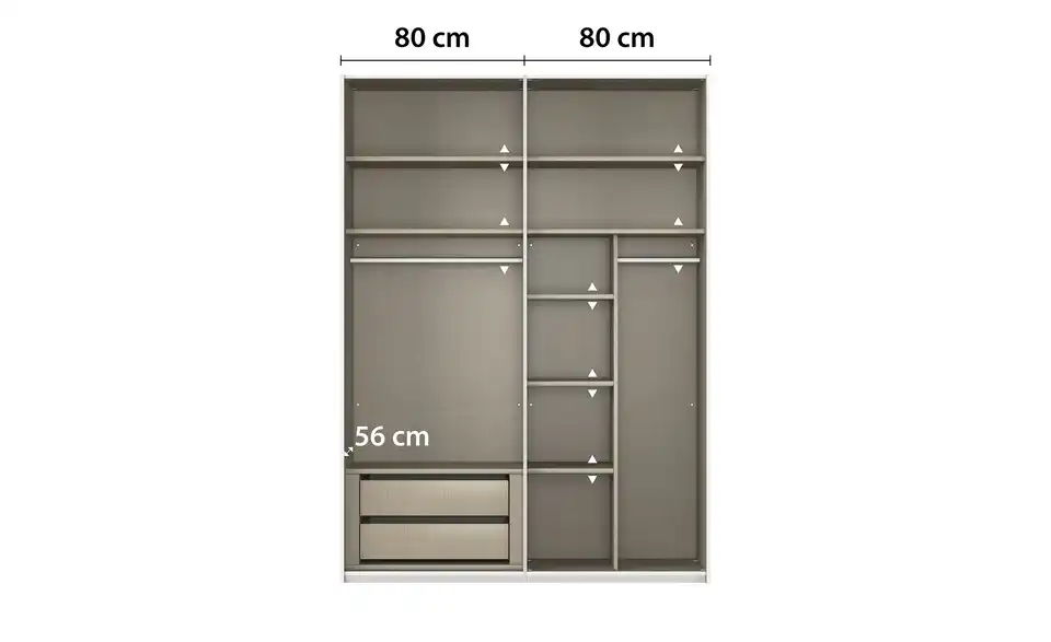 - Mehr zu AusführungZweitüriger Schwebetürenschrank mit Spiegel inkl. ZubehörBestehend aus zwei Elementen (je ca. 80 cm breit)