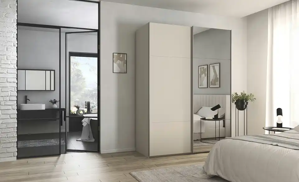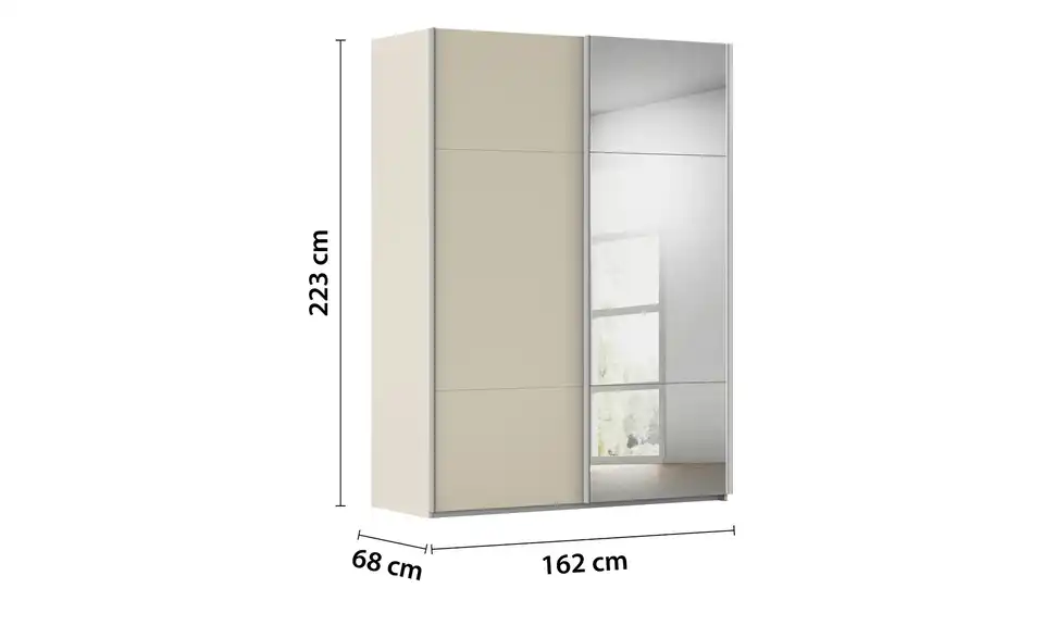 - Mehr zu AusführungZweitüriger Schwebetürenschrank mit Spiegel inkl. ZubehörBestehend aus zwei Elementen (je ca. 80 cm breit)