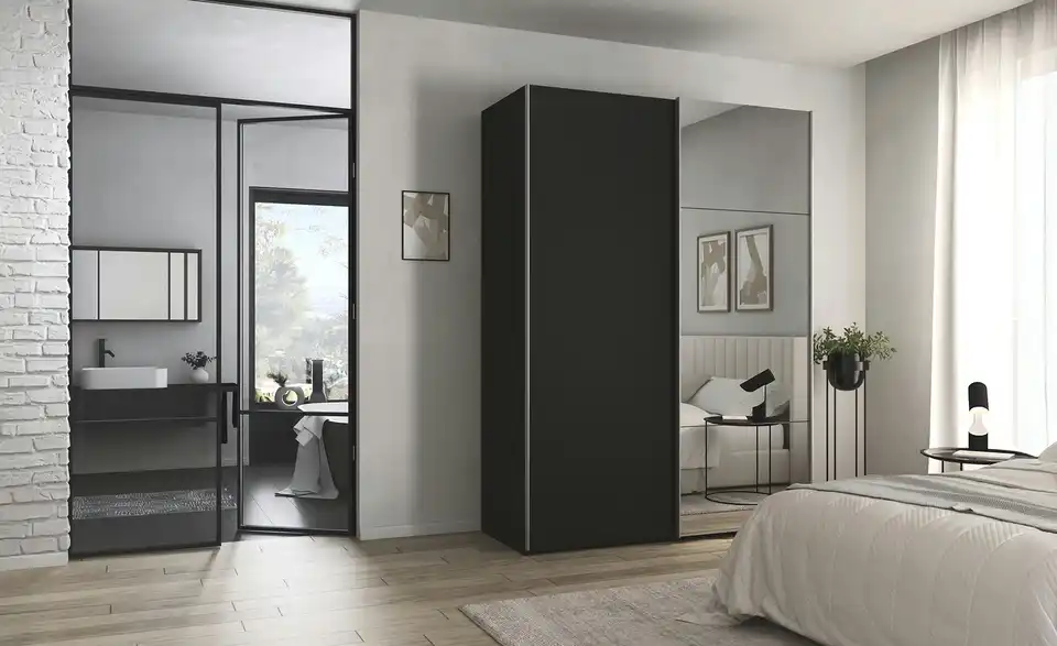 - Mehr zu AusführungZweitüriger Schwebetürenschrank mit Spiegel inkl. ZubehörBestehend aus zwei Elementen (je ca. 80 cm breit)
