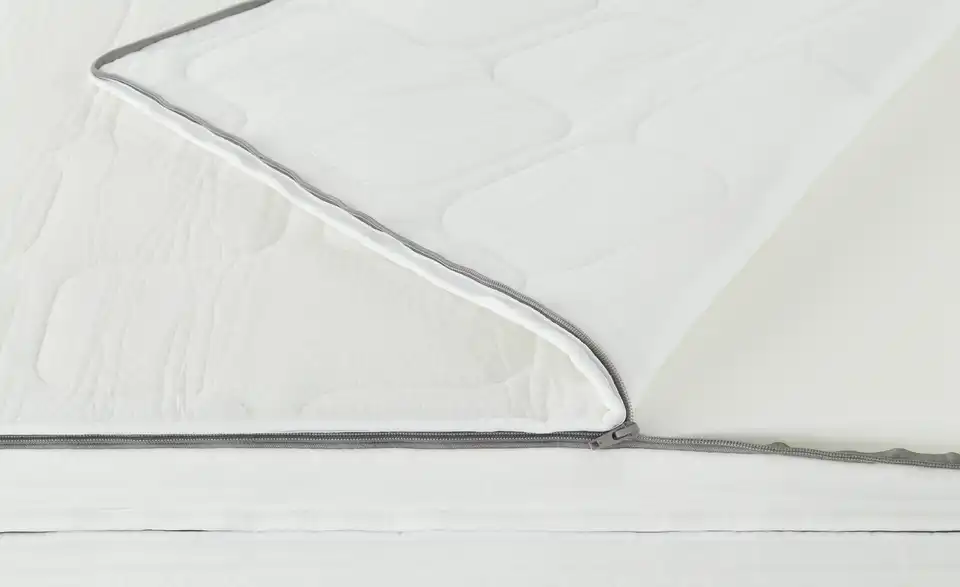 - Mehr zu AusführungLiegeseite mit ca. 5 cm druckentlastenden Memory-Schaum-Topperintegrierter Topper mit Reißverschluss (Anti-Rutsch-Effekt)mit Schulter-Entlastungs-System zur Vermeidung von muskulären Verspannungengutes Schlafklima dank offenporigem Schaummaterial und atmungsaktiven Textilienatmungsaktiver Doppeltuch-Bezugsstoffbis 60° C waschbarTopper- und Matratzenbezug sind abnehmbar und waschbar