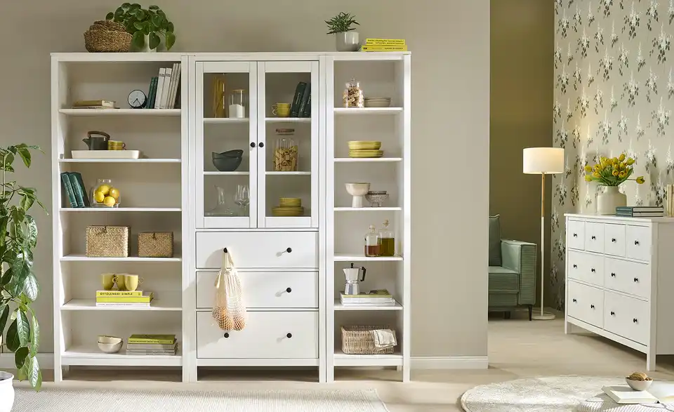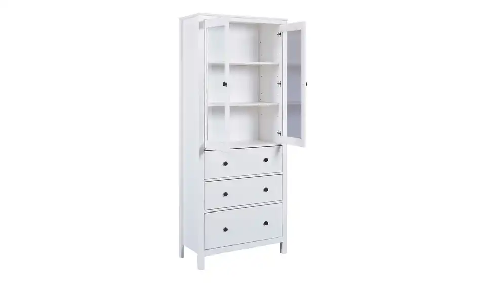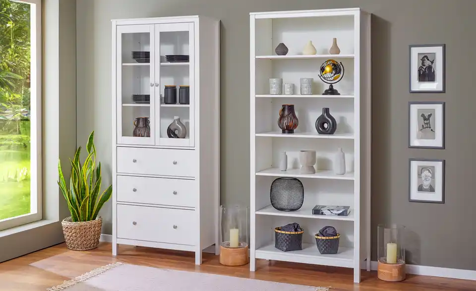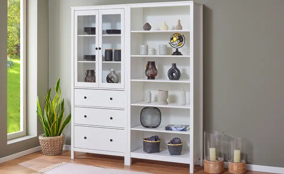 Die Serie Landliv lässt die Herzen von Landhaus-Liebhabern höherschlagen. Weißes Massivholz und minimalistische Akzente geben den Möbeln der Serie einen attraktiven, ländlichen Stil. Diese Vitrine bietet praktischen Stauraum in drei einsehbaren und drei blickdichten Fächern. Durch das kombinationsfreudige Design kann die Vitrine in nahezu jedem Raum eingesetzt werden. Unser Tipp: Kombinieren Sie die Vitrine mit Regalen der Serie, um sich eine Wohnwand im Landhausstil zusammenzustellen.Lieferung & Versand