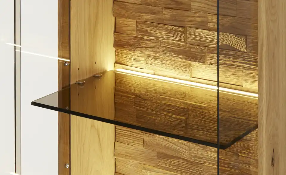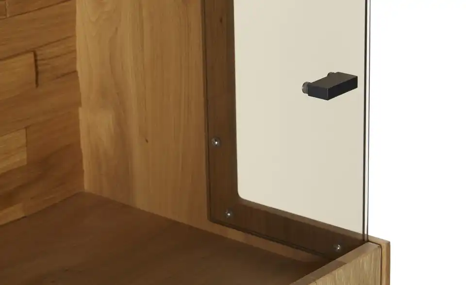 - Mehr zu MaterialKorpus und Front aus Massivholz furniert in Wildeiche geöltsichtbare Rückwand aus Holzwerkstoff furniert in Spalt-Eiche