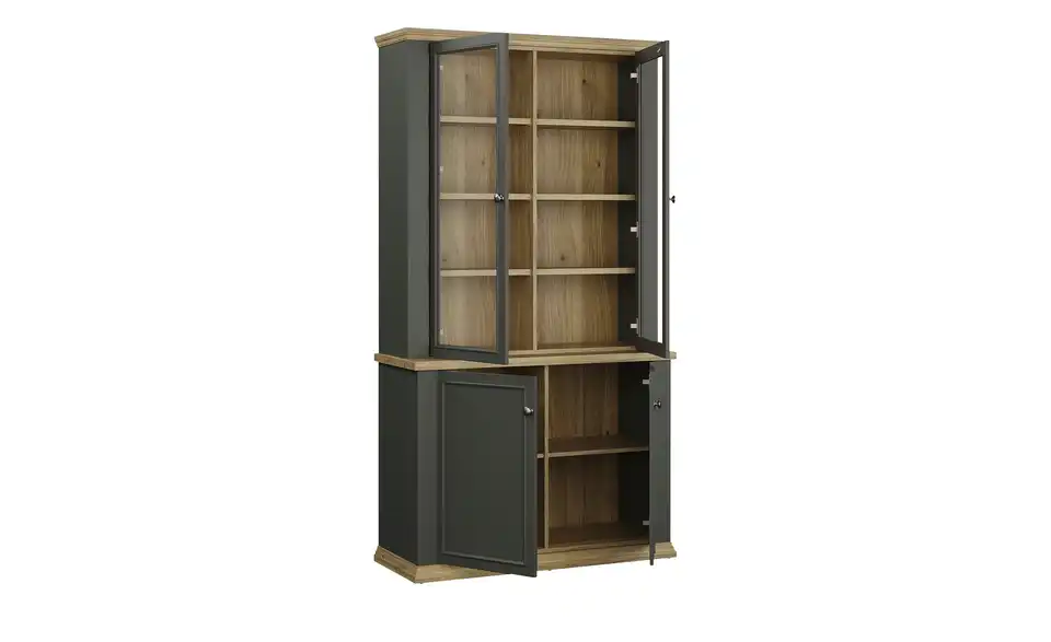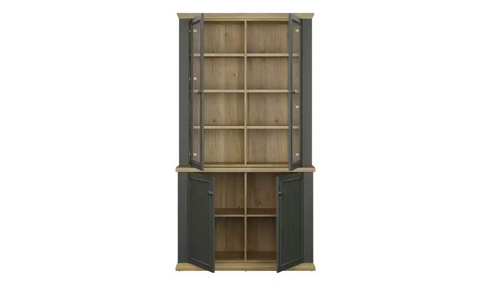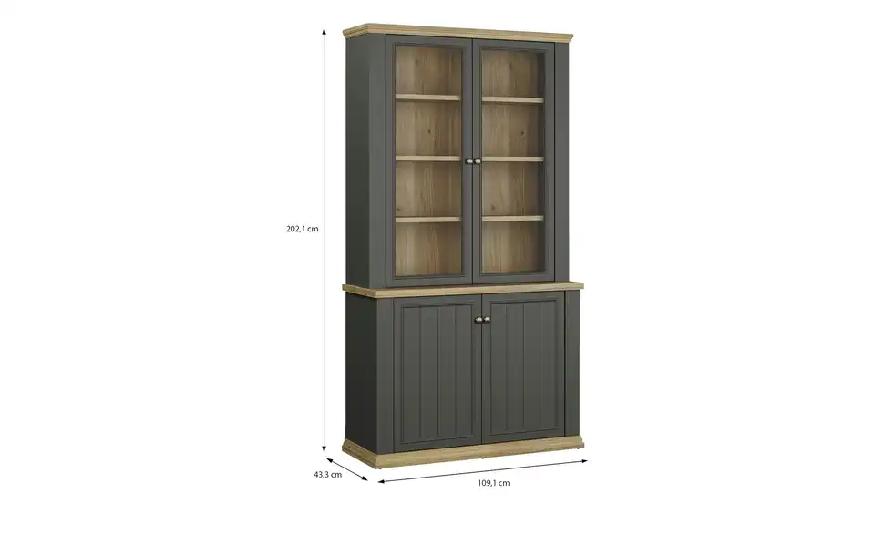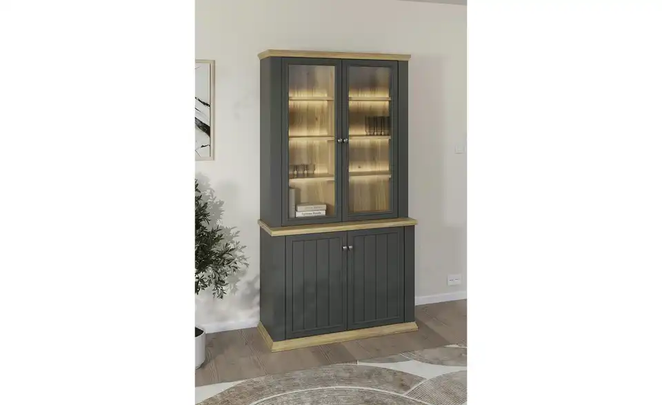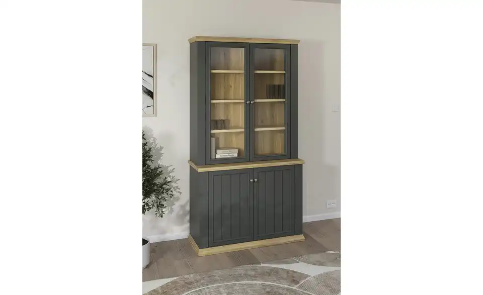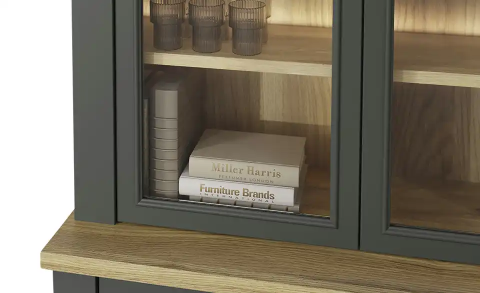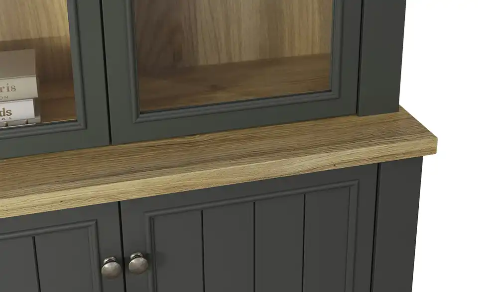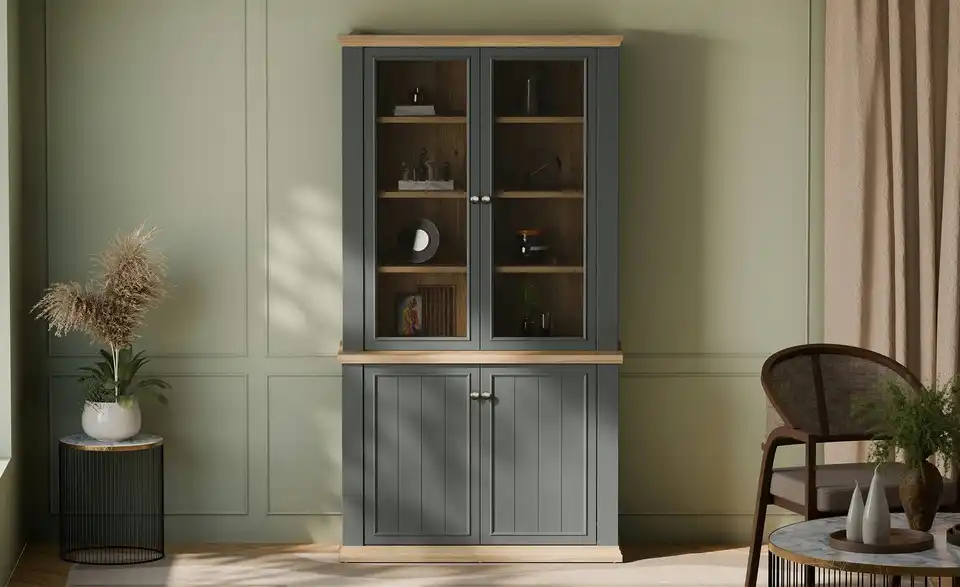Diese Serie ist eine moderne Neuinterpretation des Landhausstils. Kassettentüren und Erhebungen sind liebevolle Details, die die Serie zu einem echten Hingucker machen. Dabei entscheiden Sie selbst, ob Sie den Landhausstil in Weiß oder Graphitgrau bevorzugen. Diese Vitrine bringt gleich acht einsehbare Fächer und Stauraum in vier blickdichten Fächern mit. Ob für Geschirr, besondere Bücher oder Ihre Lieblingsdeko: Die Vitrine ist vielseitig einsetzbar und kann mit der passenden Beleuchtung hervorragend ergänzt werden. Diese finden Sie unten bei „Empfohlene Ergänzungsartikel“.Lieferung & Versand