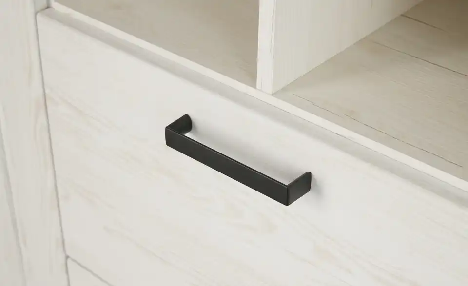 - Mehr zu MaterialKorpus aus Holzwerkstoff beschichtet in Pinie Aurelio (Nachbildung)Front aus Holzwerkstoff tiefgezogen in Pinie Aurelio (Nachbildung)Absetzung aus Holzwerkstoff beschichtet in Eiche Artisan (Nachbildung)Glastüren aus SicherheitsglasGriffe aus Metall in Schwarz eloxiert