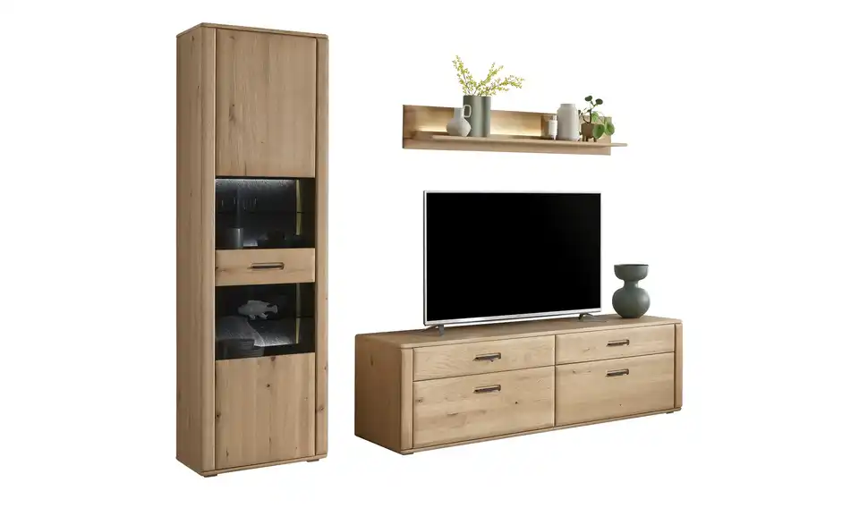 - Mehr zu MaterialFront aus Ast/Balkeneiche massiv mit durchgehender Lamelle in Kristalleiche geöltKorpus aus Ast/Balkeneiche furniert in Kristalleiche geöltGriffe aus Metall in Anthrazitsichtbare Rückwand aus Stein Furnier in Alpin