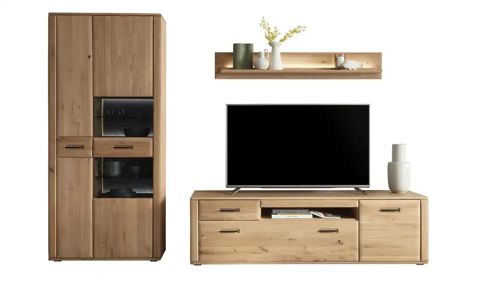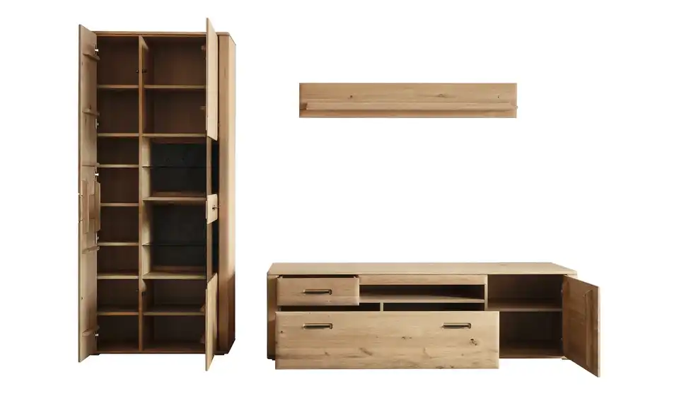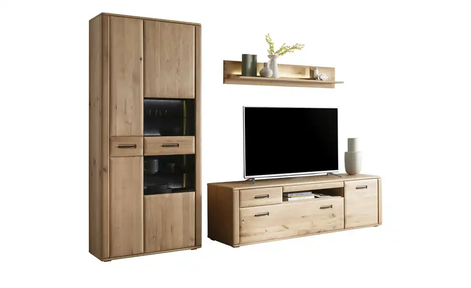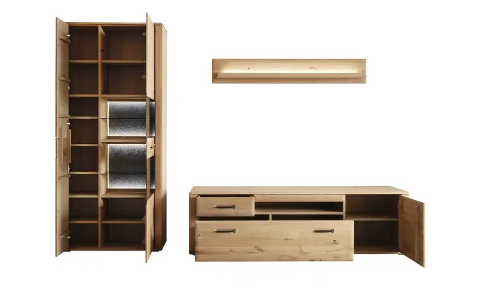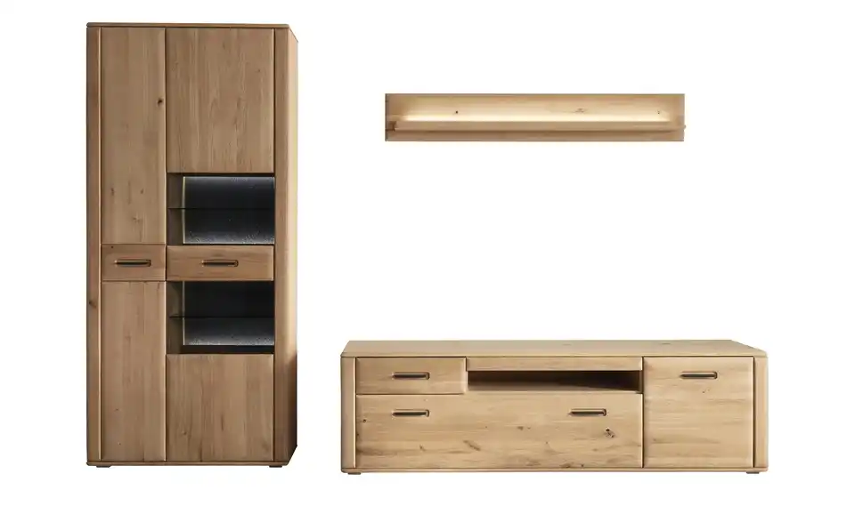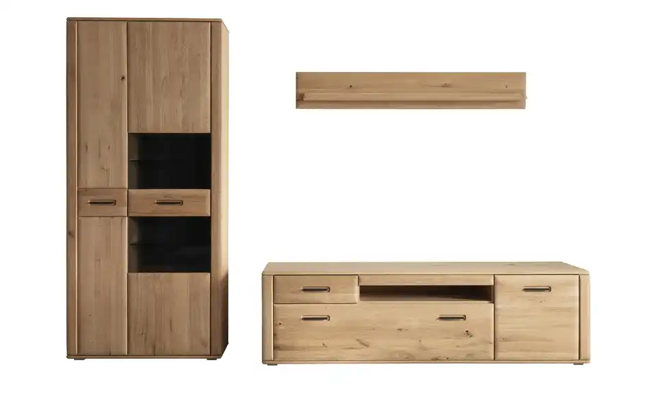 - Mehr zu MaterialFront aus Ast/Balkeneiche massiv mit durchgehender Lamelle in Kristalleiche geöltKorpus aus Ast/Balkeneiche furniert in Kristalleiche geöltGriffe aus Metall in Anthrazitsichtbare Rückwand aus Stein Furnier in Alpin