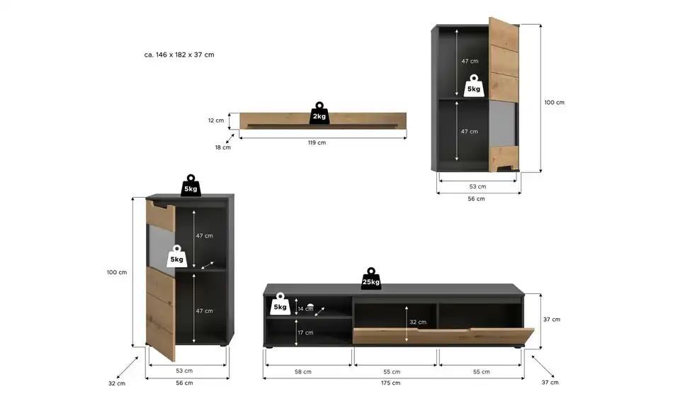 - Lowboard (BxHxT)175x37x37