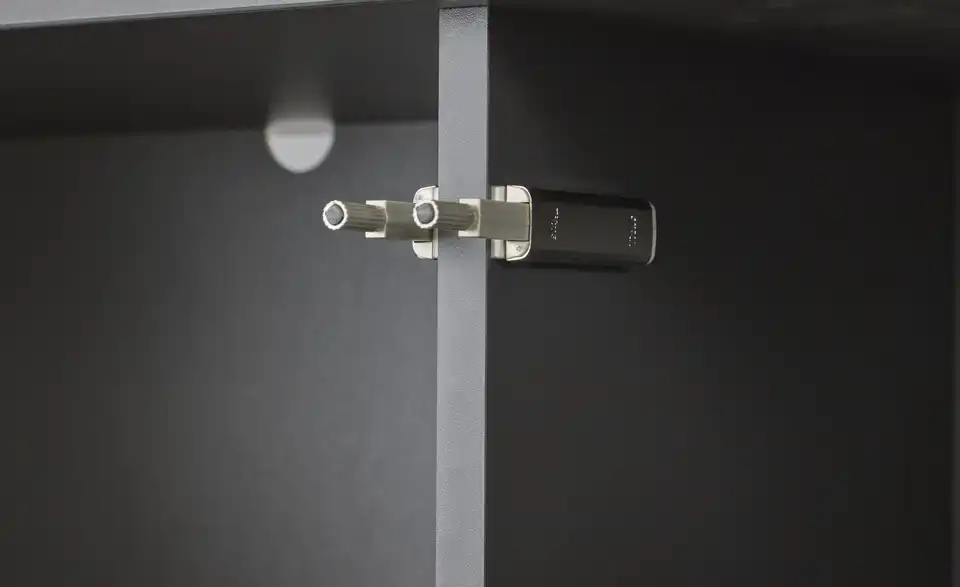 - Mehr zu MaterialKorpus und Front aus Holzwerkstoff melaminbeschichtet in Cosmos Grey (Dunkelgrau)Gestell aus Metall in Schwarz pulverbeschichtet