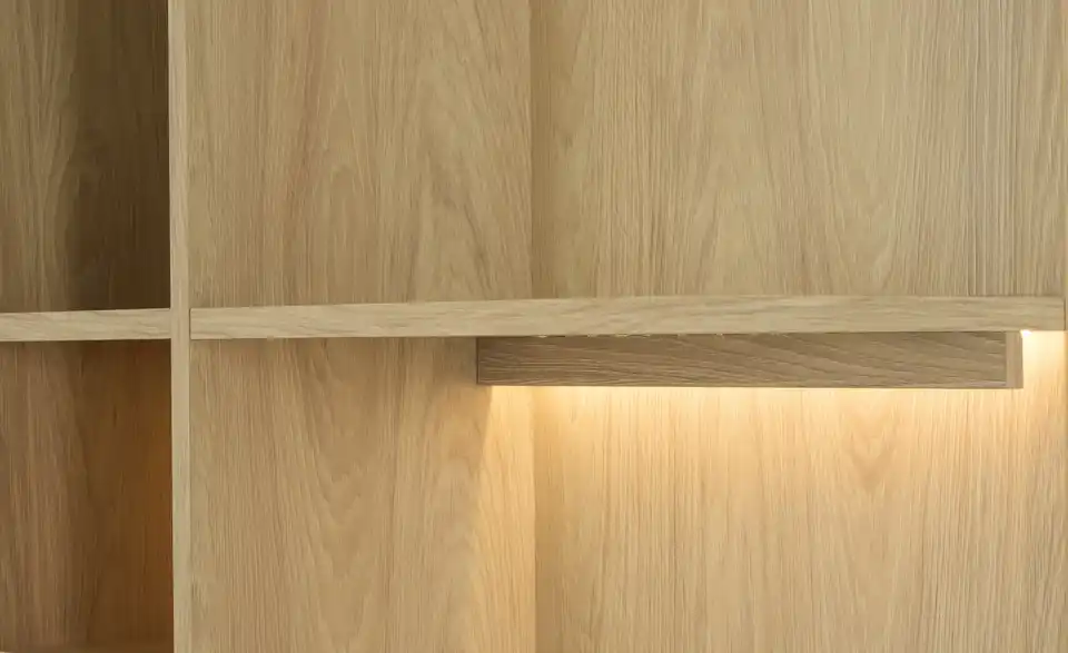 - Mehr zu MaterialKorpus und Rückwand aus Holzwerkstoff melaminbeschichtet in Eiche Hikora (Nachbildung)