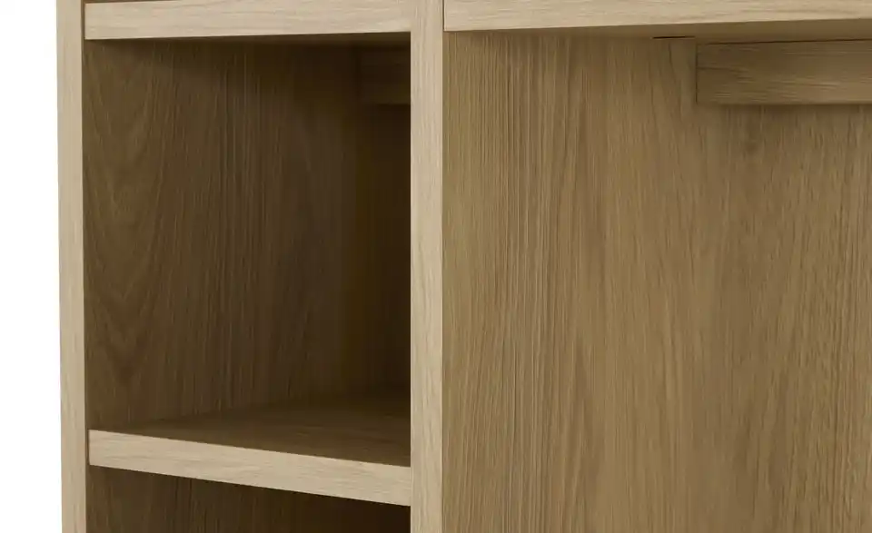 - Mehr zu MaterialKorpus und Rückwand aus Holzwerkstoff melaminbeschichtet in Eiche Hikora (Nachbildung)