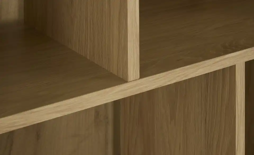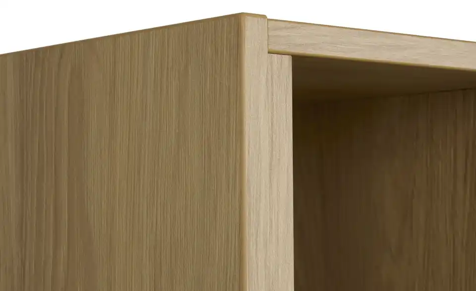 - Mehr zu MaterialKorpus und Rückwand aus Holzwerkstoff melaminbeschichtet in Eiche Hikora (Nachbildung)