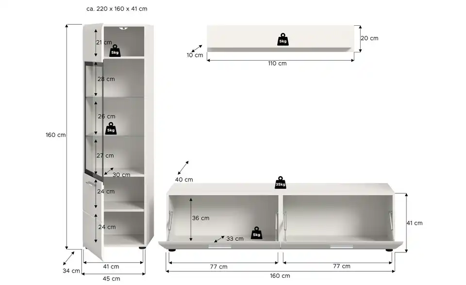 - max. Belastbarkeit je verstellbarem Einlegeboden bis ca.5 kg