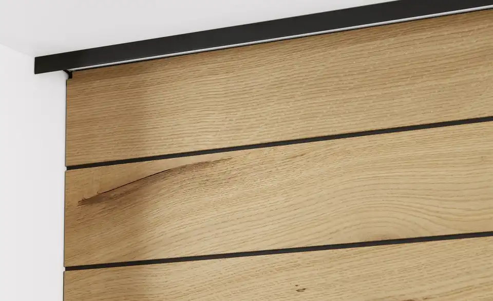 - Mehr zu MaterialAkzentfront aus Balkeneiche-Platten massiv stark gebürstet auf hochwertigem Holzstoffkern