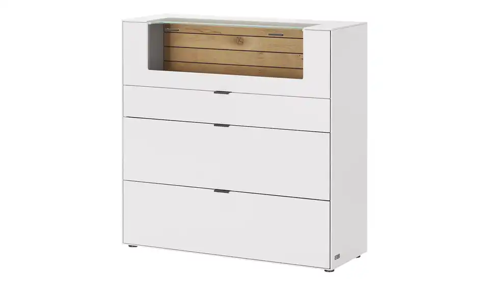 Die Designer-Serie Como der Marke Jette Home präsentiert sich modern und minimalistisch. Eine gerade Linienführung und zeitlose Farben machen die Serie kombinationsfreudig und vielseitig einsetzbar. Insgesamt vier Fächer stehen Ihnen für Stauraum zur Verfügung: Drei Schubfächer und ein einsehbares Vitrinen-Klappfach. Die Schubfächer und die Klapptür schließen dank Soft-Close besonders sanft und nahezu lautlos.bewusst wohnen