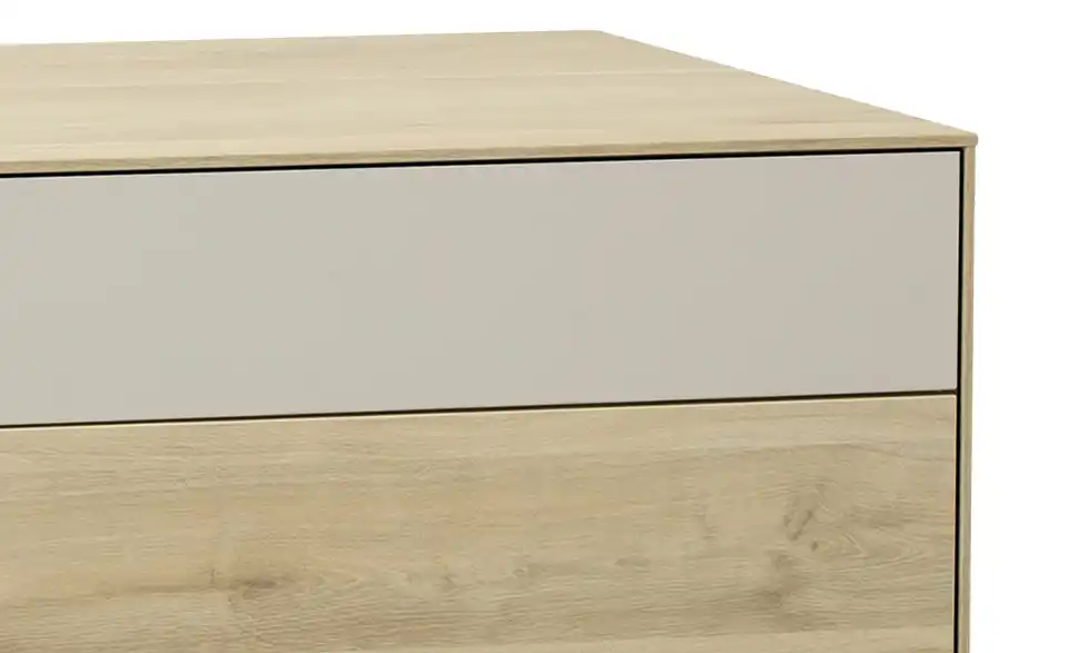 - Mehr zu MaterialKorpus und Front aus Lamulux in Fresh Oak (Eiche Nachbildung)Absetzung in Ivory (Hellgrau)