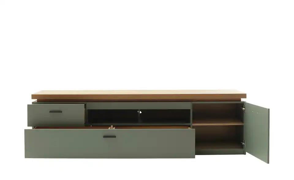 - Mehr zu MaterialKorpus und Front aus Holzwerkstoff melaminbeschichtet in SalbeigrünOberboden aus Holzwerkstoff melaminbeschichtet in Eiche Evoke (Nachbildung)Griffe aus Metall in Schwarzgrau