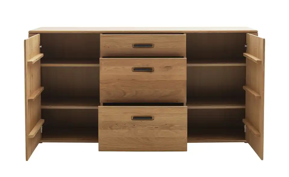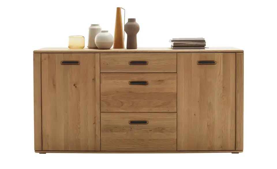 - Mehr zu MaterialFront aus Ast/Balkeneiche massiv mit durchgehender Lamelle in Kristalleiche geöltKorpus aus Ast/Balkeneiche furniert in Kristalleiche geöltGriffe aus Metall in Anthrazit