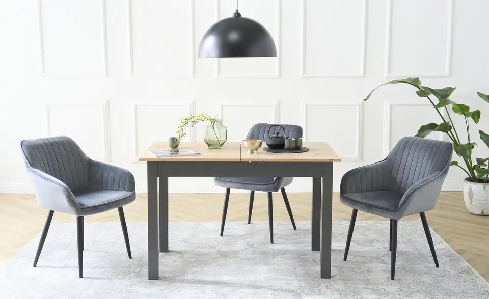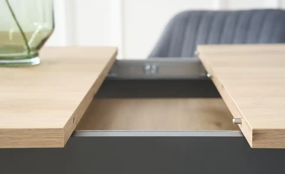 Dieser zeitlose, pflegeleichte Tisch passt problemlos zu den meisten Einrichtungsstilen. Bis zu vier Personen finden hier bequem Platz. Ziehen Sie die beiden äußeren Platten ganz leicht auseinander und legen die Erweiterungsplatte mittig ein: Schon steht Ihnen mehr Platz zur Verfügung.Lieferung & Versand