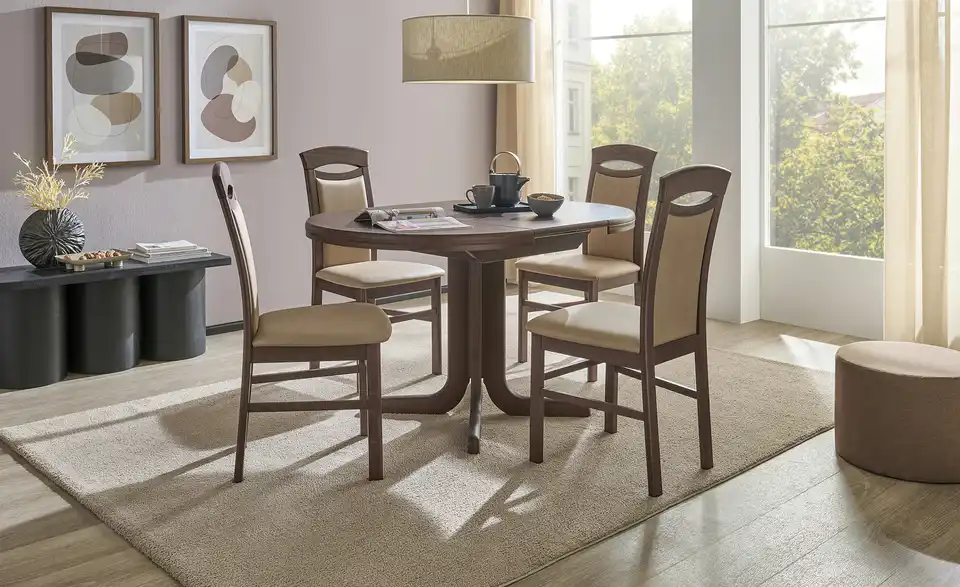 - Mehr zu MaterialTischplatte aus Holzwerkstoff furniert in NussbaumGestell aus Massivholz in Buche nussbaumfarbig