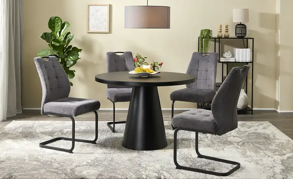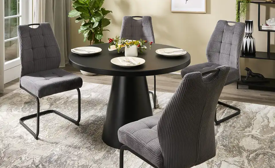 Minimalistisch, clean und ohne überflüssigen Schnickschnack: Dieser runde Esstisch lässt sich mit wirklich allem problemlos kombinieren. Geben Sie dem 110 Zentimeter großen Säulentisch Ihre ganz eigene individuelle Note und entscheiden Sie selbst, welche Stühle, welches Geschirr und welche Dekoelemente Sie für Ihren neuen Tisch nutzen wollen. Gut zu wissen: Auf dem Tisch liegt eine Glastischplatte auf. Flecken und Flüssigkeiten können Sie dadurch mühelos abwischen.Lieferung & Versand