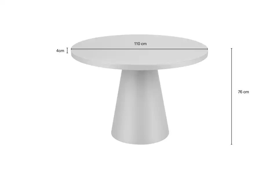 - Minimalistisches Design: Die runde Form und das konische Tischbein schaffen einen modernen, einladenden Look