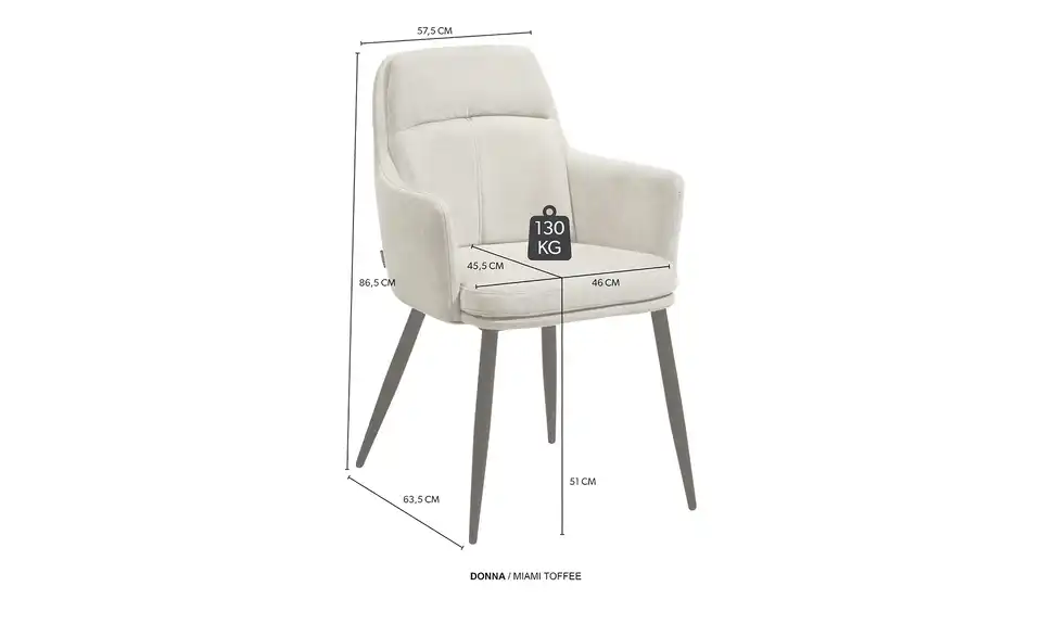 uno Armlehnstuhl Donna, Bemaßung