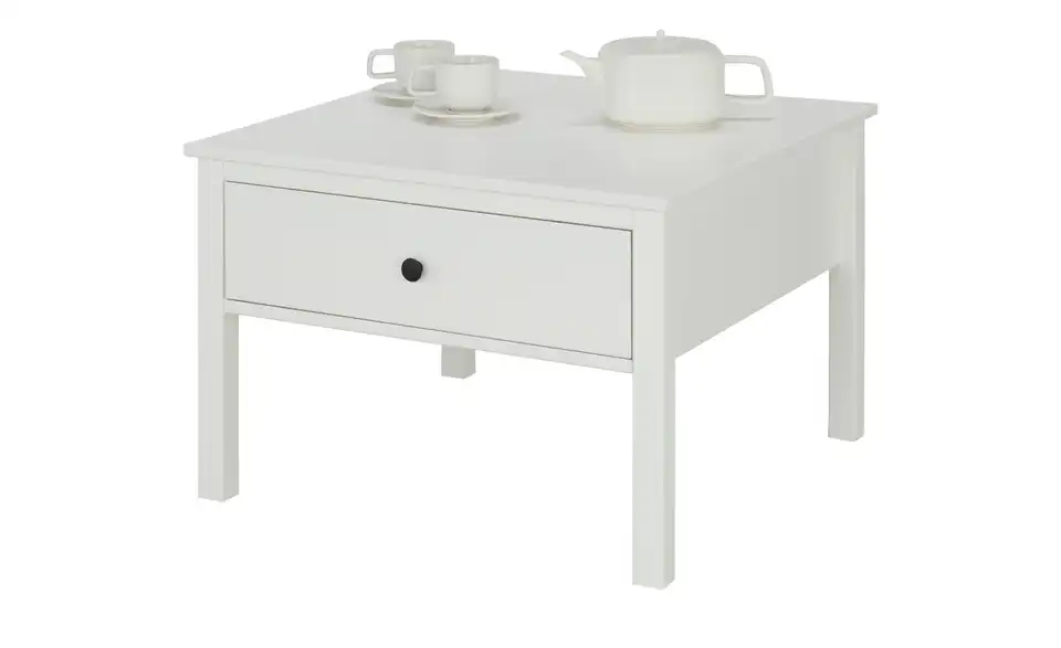 Die Serie Landliv lässt die Herzen von Landhaus-Liebhabern höherschlagen. Weißes Massivholz und minimalistische Akzente geben den Möbeln der Serie einen attraktiven, ländlichen Stil. Dieser quadratische Couchtisch besitzt unter seiner 70 x 70 Zentimeter großen Tischplatte ein integriertes Schubfach, das Sie für Tischdeckchen, Magazine und Mehr benutzen können. Dank der Höhe von 47 Zentimetern passt der Couchtisch zu diversen Sofas und Sesseln.Lieferung & Versand