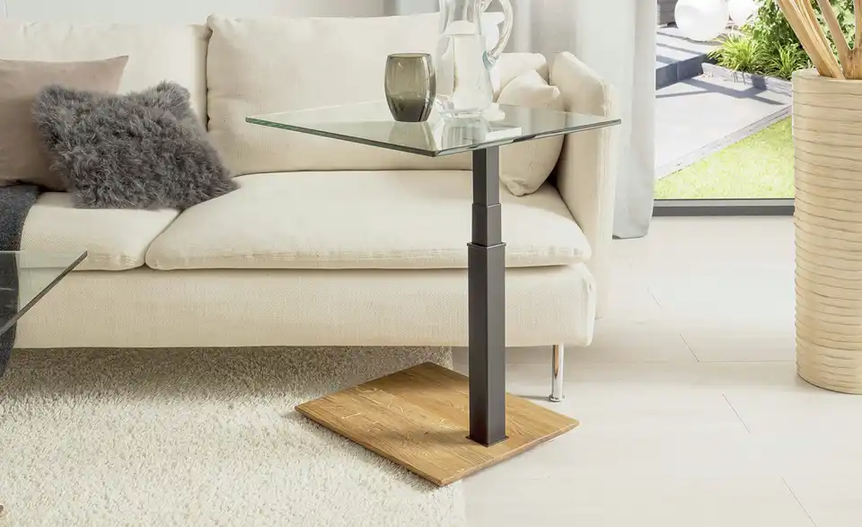 - Mehr zu MaterialTischplatte Sicherheitsklarglas (ESG)Bodenplatte MassivholzRollen Kunststoff