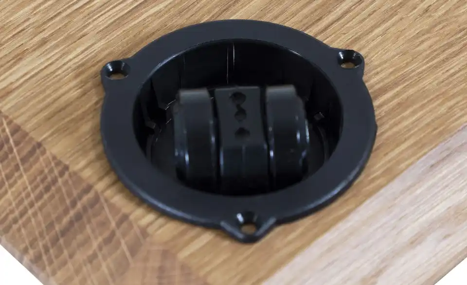 - Mehr zu MaterialBodenplatte Massivholz, geöltTischplatte und Bodenplatte keilverzinktRollen aus Kunststoff