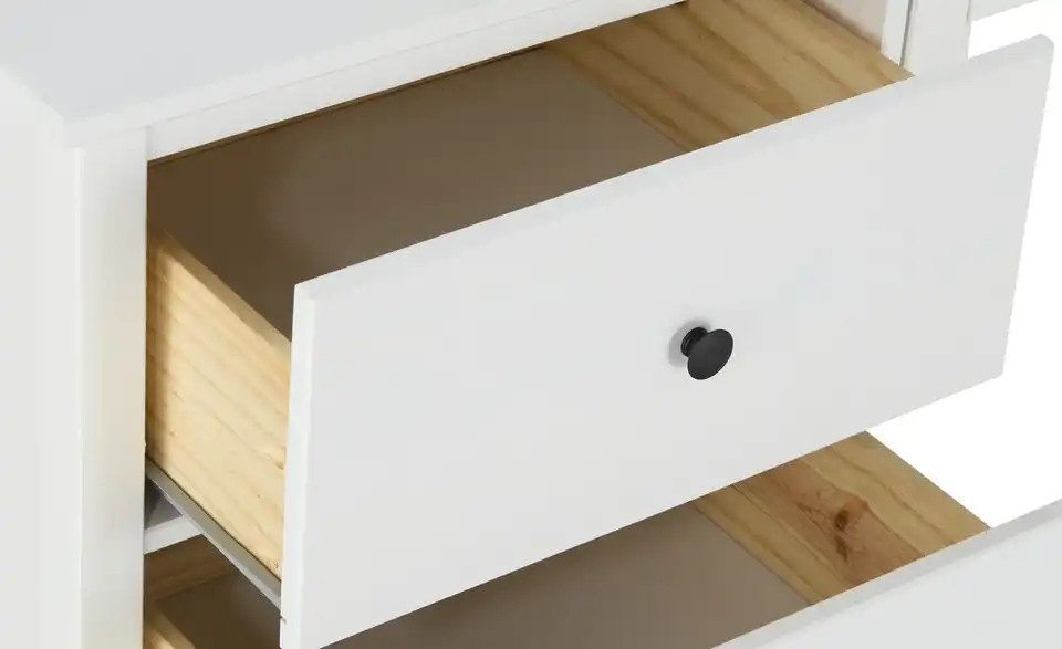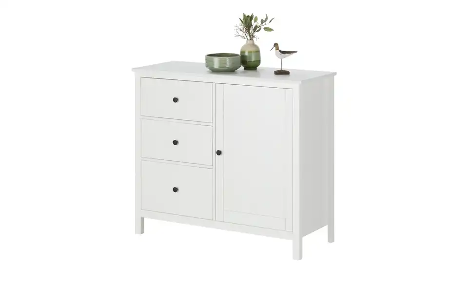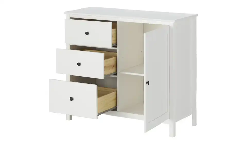 Die Serie Landliv lässt die Herzen von Landhaus-Liebhabern höherschlagen. Weißes Massivholz und minimalistische Akzente geben den Möbeln der Serie einen attraktiven, ländlichen Stil. Diese Kommode kann in zahlreichen Raumkonzepten zum Einsatz kommen. Nutzen Sie den praktischen Stauraum der drei Schubkästen für Wohnzimmerzubehör, Küchentextilien, Badhandtücher oder Bettwäsche. Auf der rechten Seite stehen Ihnen außerdem zwei geräumige Fächer zur Verfügung, die Sie ebenfalls frei bestücken können. Sie entscheiden, wo Sie diese vielseitig einsetzbare Kommode nutzen möchten.Lieferung & Versand