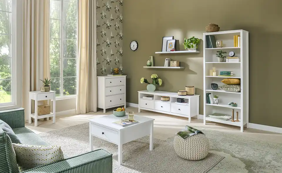 Die Serie Landliv lässt die Herzen von Landhaus-Liebhabern höherschlagen. Weißes Massivholz und minimalistische Akzente geben den Möbeln der Serie einen attraktiven, ländlichen Stil. Dieses Beistelltischchen können Sie in wirklich jedes Raumkonzept integrieren. Ob im Flur, Wohn-, Arbeits-, oder sogar Schlafzimmer: Dieses kleine Tischchen bietet mit seinen zwei offenen Ablageflächen und seinem Schubfach praktischen Stauraum für Deko, Kleinkram und Mehr.Lieferung & Versand