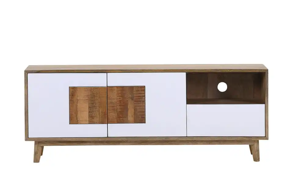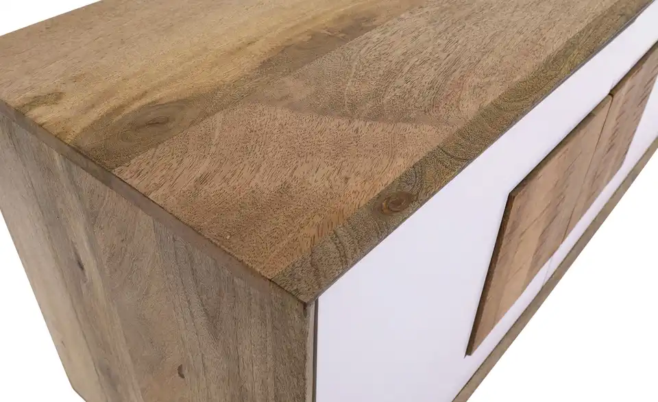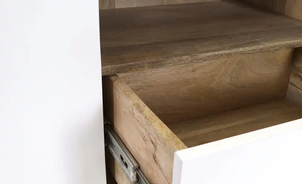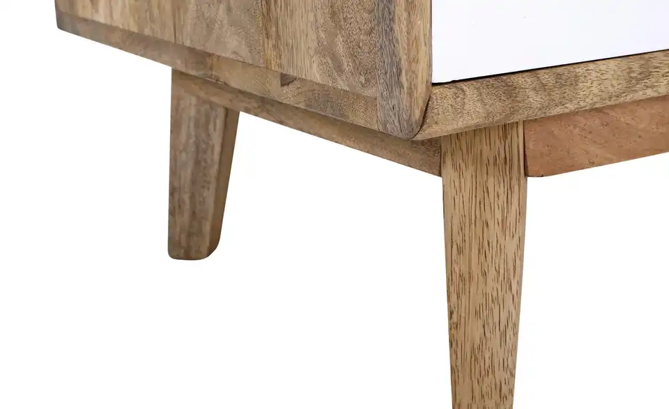 - Mehr zu MaterialFront MDF lackiert mit HolzapplikationKorpus, Füße Massivholz gebeizt, lackiert und gewachst