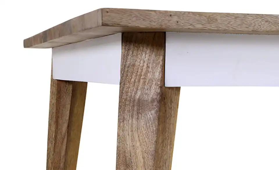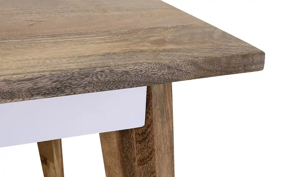 - Mehr zu MaterialZarge MDF lackiertTischplatte, Füße Massivholz gebeizt, lackiert und gewachst