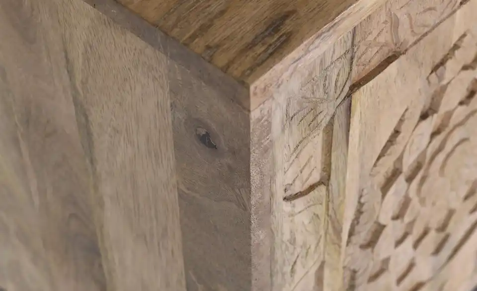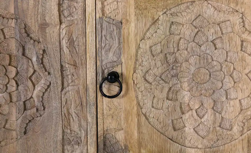 - Mehr zu MaterialMassivholz gebeizt und lackiertFront mit aufwendigen Schnitzereien