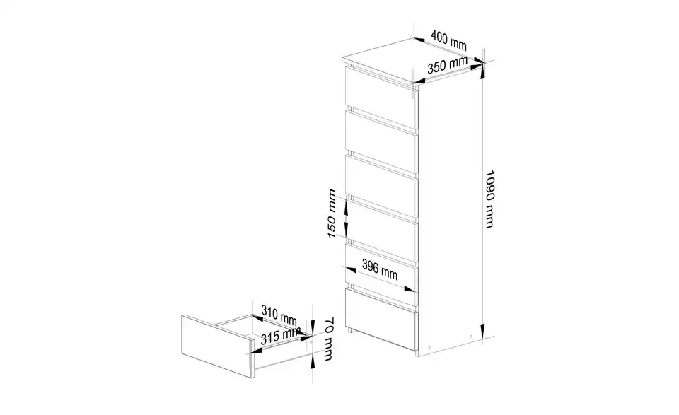 - 6 Schubladen mit viel Stauraum
