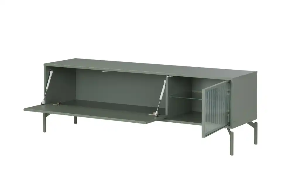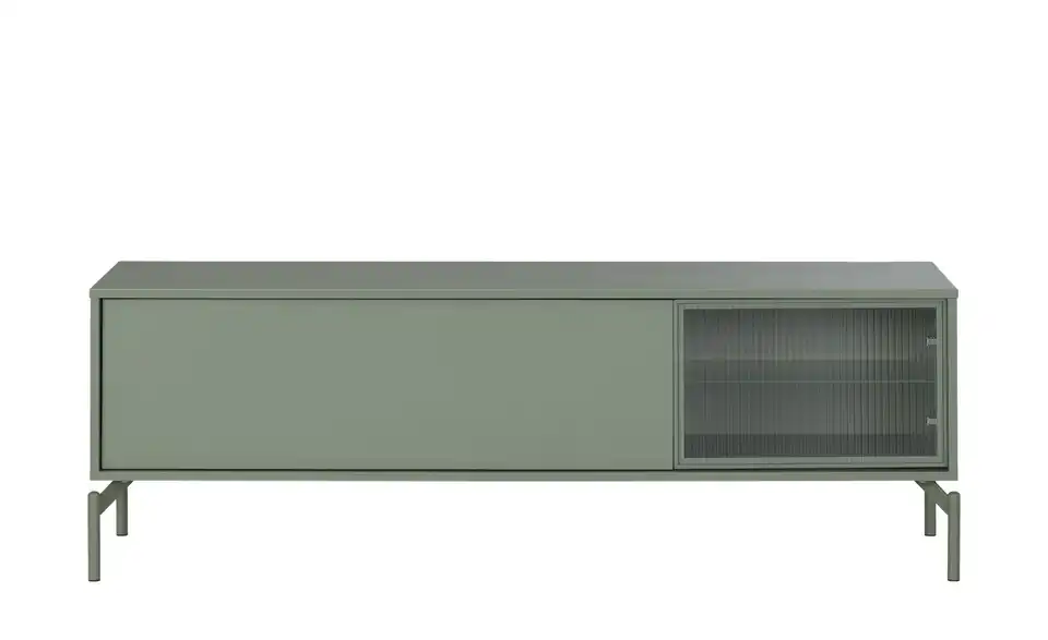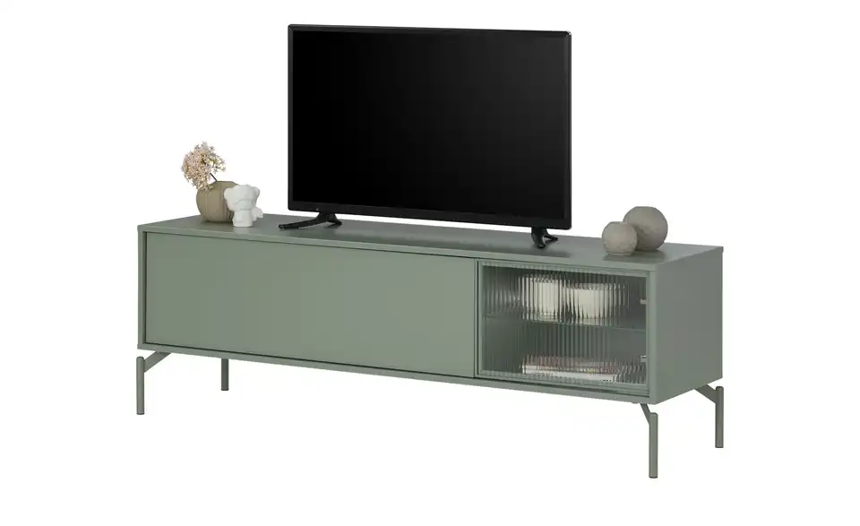 Dieses TV-Lowboard verbindet modernes Design mit zeitgemäßen Funktionen und Stauraum. Das grifflose, einfarbige Design passt in nahezu jedes Raumkonzept. Die blickdichte Klappe und die geriffelte Glastür lassen sich durch die Push-to-open-Funktion kinderleicht öffnen. Durch die Riffeloptik der Glastür schimmern die dahinter platzierten Dekoobjekte nur dezent durch. Die mitgelieferte Glaskantenbeleuchtung, die übrigens auch über eine Timer-Funktion verfügt, sorgt hier für ein echtes Wohlfühl-Ambiente. Außerdem praktisch: Sie können die Farbe des Lichts mit der Fernbedienung mühelos ändern.Lieferung & Versand