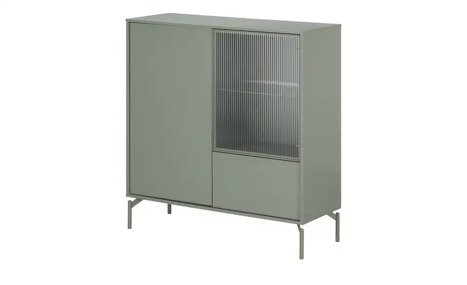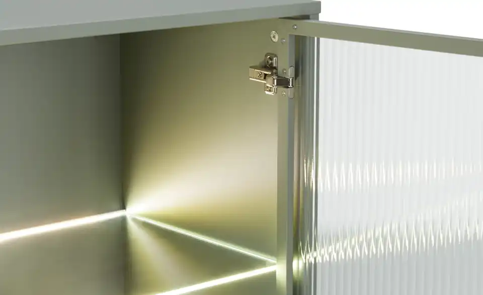 Dieses Highboard verbindet modernes Design mit zeitgemäßen Funktionen und Stauraum. Grifflose, einfarbige Fronten lassen sich durch die Push-to-open-Funktion kinderleicht öffnen. Auf der rechten Seite befindet sich eine Schublade und ein halbdurchsichtiger Bereich, der an ein Vitrinenfach erinnert. Durch die Riffeloptik der Glastür schimmern die dahinter platzierten Dekoobjekte nur dezent durch. Die mitgelieferte Glaskantenbeleuchtung, die übrigens auch über eine Timer-Funktion verfügt, sorgt hier für ein echtes Wohlfühl-Ambiente. Außerdem praktisch: Sie können die Farbe des Lichts mit der Fernbedienung mühelos ändern.Lieferung & Versand