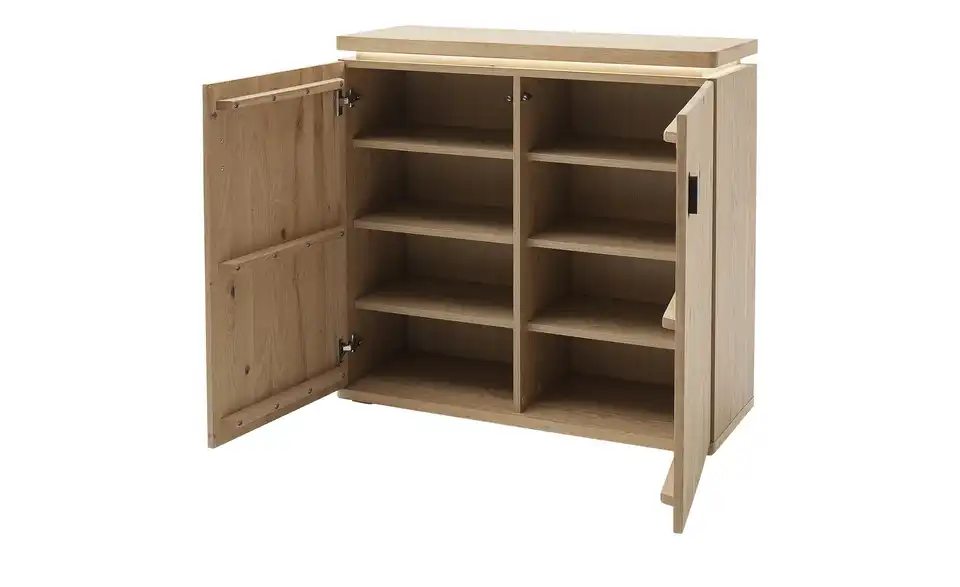 - Mehr zu MaterialKorpus Spanplatte furniert (Eiche)Front Massivholz (Balkeneiche)Rückwand HDF