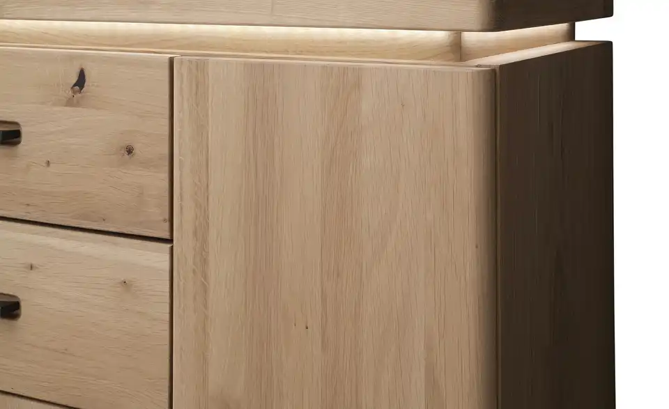 - Mehr zu MaterialKorpus Spanplatte furniert (Eiche)Front Massivholz (Balkeneiche)Rückwand HDF
