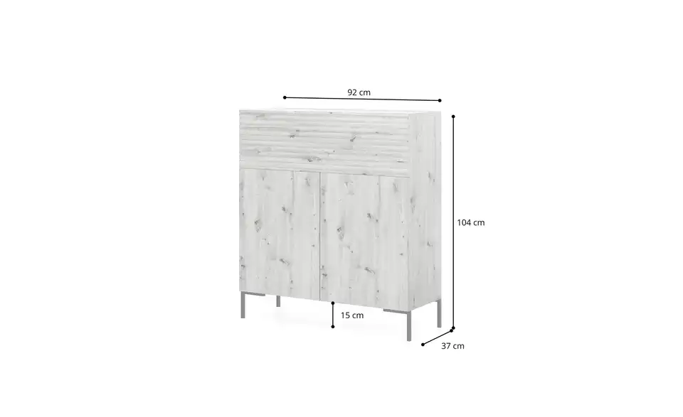- SicherheitshinweiseVerwenden Sie das Produkt ausschließlich gemäß seiner vorgesehenen Funktion. Lesen Sie die Montage- und Bedienungsanleitung sorgfältig vor der Montage oder Nutzung.Montieren Sie das Möbelstück nicht, wenn Teile beschädigt sind. Wenden Sie sich in diesem Fall an den Händler.Überschreiten Sie nicht die zulässige Belastung des Möbels.Die Montage des Möbelstücks darf nur von Erwachsenen durchgeführt werden.Überprüfen Sie das Möbelstück vor der Nutzung sorgfältig. Diese Prüfung sollte von einem Erwachsenen vorgenommen werden.Stellen Sie das Möbelstück nicht in der Nähe von Feuerquellen auf.Halten Sie kleine Teile, Folienverpackungen und Ähnliches von Kindern fern.Überprüfen Sie regelmäßig, ob die Schrauben festgezogen und die Beschläge sicher befestigt sind.Verwenden Sie das Möbelstück nur in geschlossenen und trockenen Räumen.Das Produkt ist nicht dafür vorgesehen, darauf zu springen oder zu klettern.Lassen Sie bewegliche Teile wie Schubladen oder Türen nicht unbeaufsichtigt offenstehen. Transportieren Sie das Möbelstück nur, indem Sie es an festen, stabilen Teilen greifen.Glaselemente, falls vorhanden, sind mit besonderer Vorsicht zu behandeln.Befestigen Sie das Möbelstück an der Wand, wenn dies in der Montageanleitung empfohlen wird, um ein Umkippen zu verhindern.Setzen Sie sich nicht auf Teile des Möbels, die dafür nicht vorgesehen sind.Stellen Sie das Möbelstück nicht in Räumen mit hoher Luftfeuchtigkeit auf.