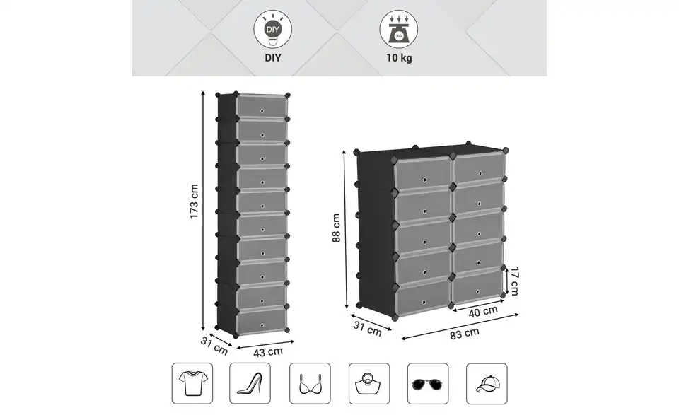 - Platz für ca. 20 Paar Schuhe