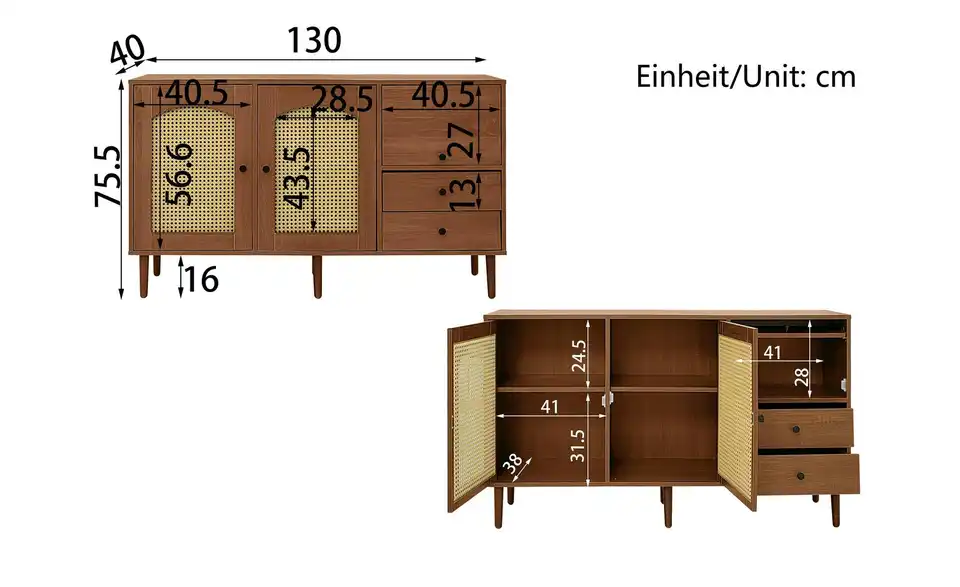 - Farbe / Dekor Korpus innenNussbaum (Nachbildung)