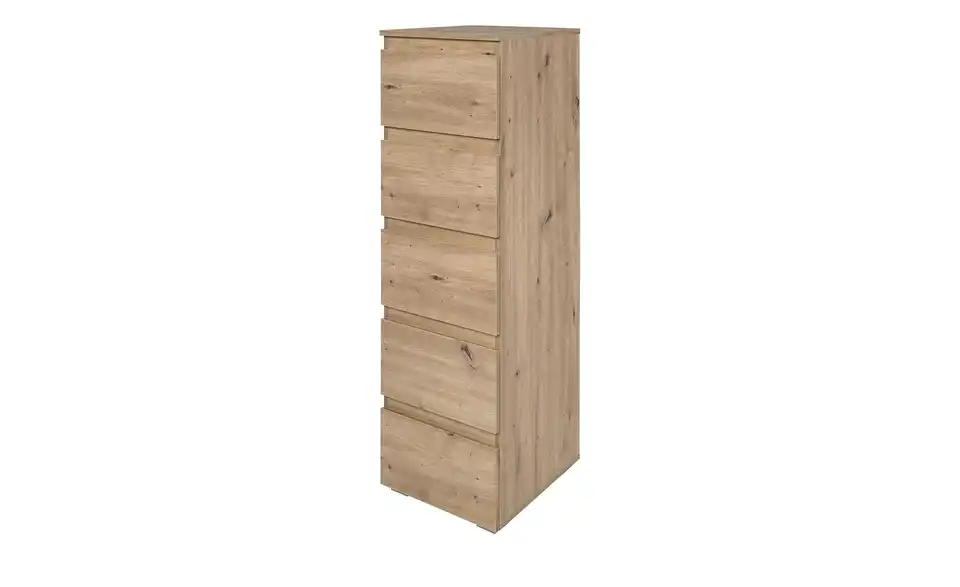 Die Hochkommode BEN ist mit fünf Schubladen ausgestattet, die übereinander angeordnet sind. Jede Schublade nimmt die gesamte Breite der Kommode ein. Korpus und Front haben eine folierte Oberfläche, die unempfindlich und leicht zu pflegen ist.Lieferung & Versand