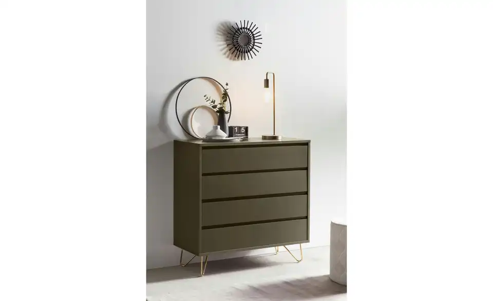 - Mehr zu Ausstattung / FunktionBeine aus Metall mit Messinglegierung, 4 Schubladen ausziehbar