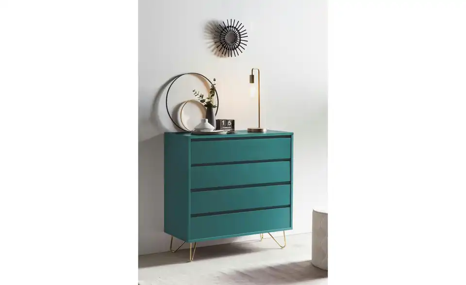 - Mehr zu Ausstattung / FunktionBeine aus Metall mit Messinglegierung, 4 Schubladen ausziehbar