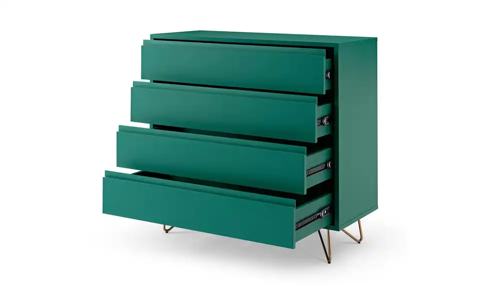- Mehr zu Ausstattung / FunktionBeine aus Metall mit Messinglegierung, 4 Schubladen ausziehbar