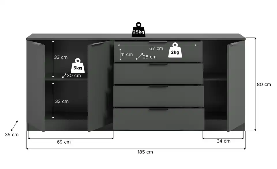 - max. Belastbarkeit je Schubkasten bis ca.2 kg